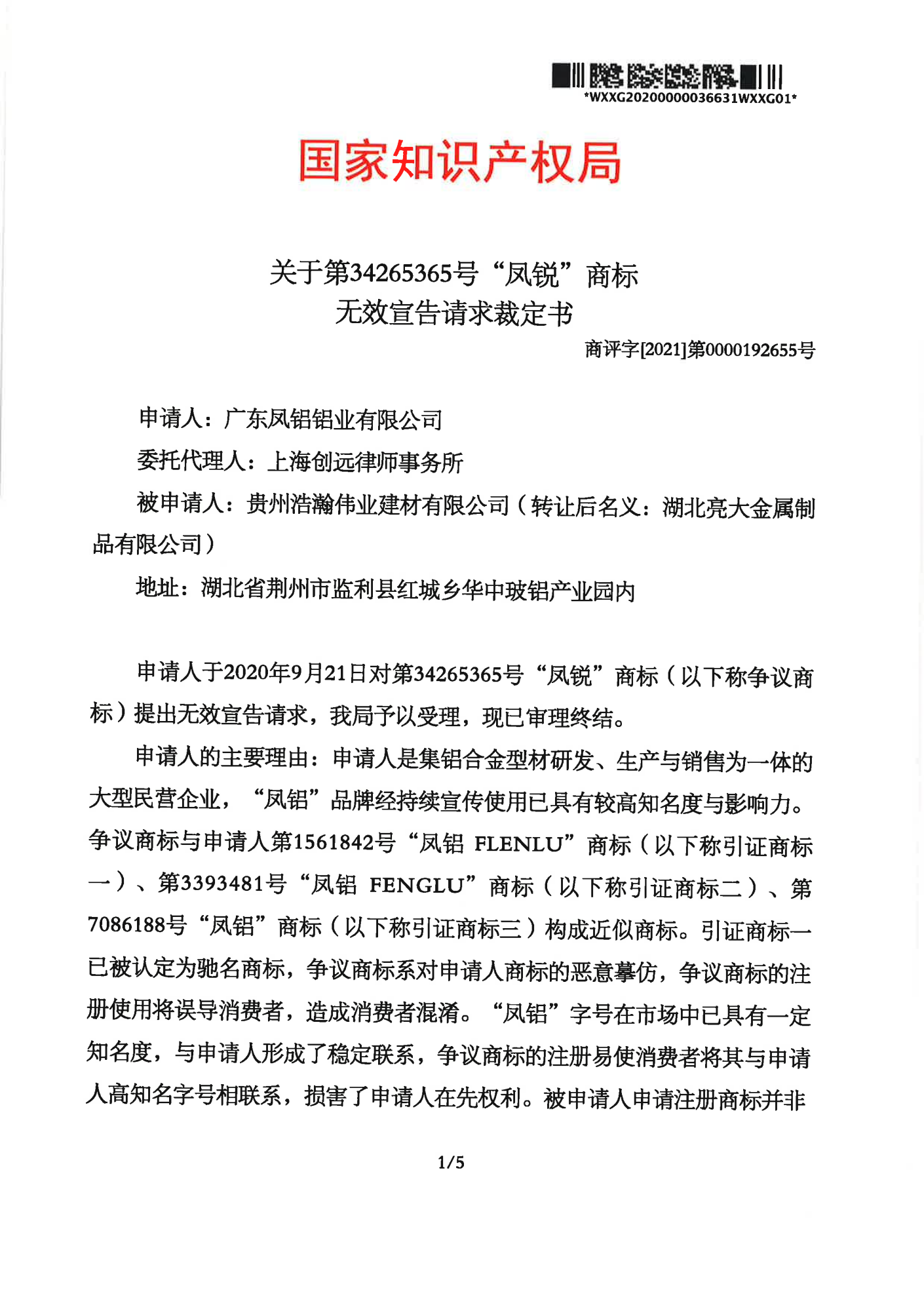 克孜勒苏柯尔克孜自治州辉知队 | 国家知识产权局:“凤锐”商标无效